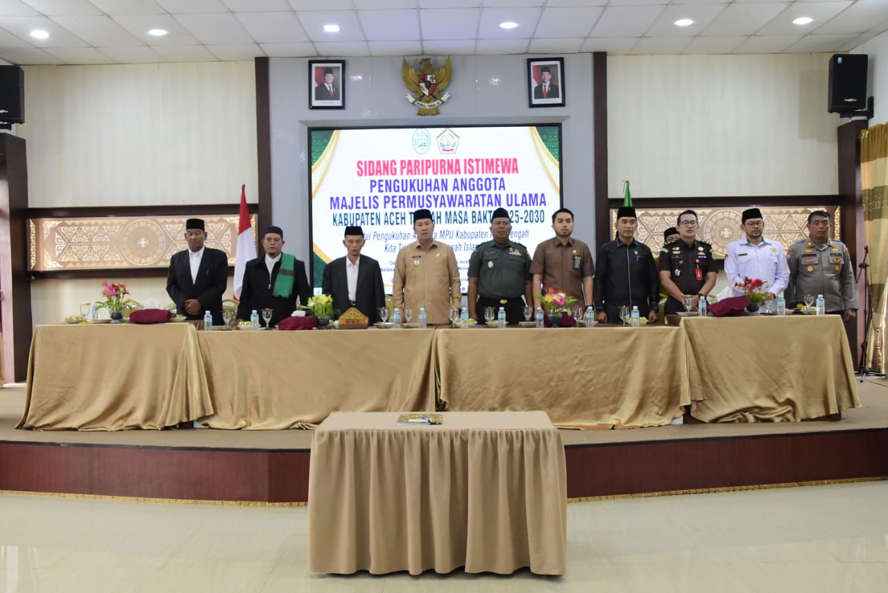 Takengon,SCNews.co.8d. – Pemerintah Kabupaten Aceh Tengah menggelar Sidang Paripurna Istimewa Pengukuhan Anggota Majelis Permusyawaratan Ulama (MPU) Kabupaten Aceh Tengah Masa Bakti 2025–2030, pada Selasa, (18/11/2025), di Gedung Ummi Pendopo Bupati Aceh Tengah.