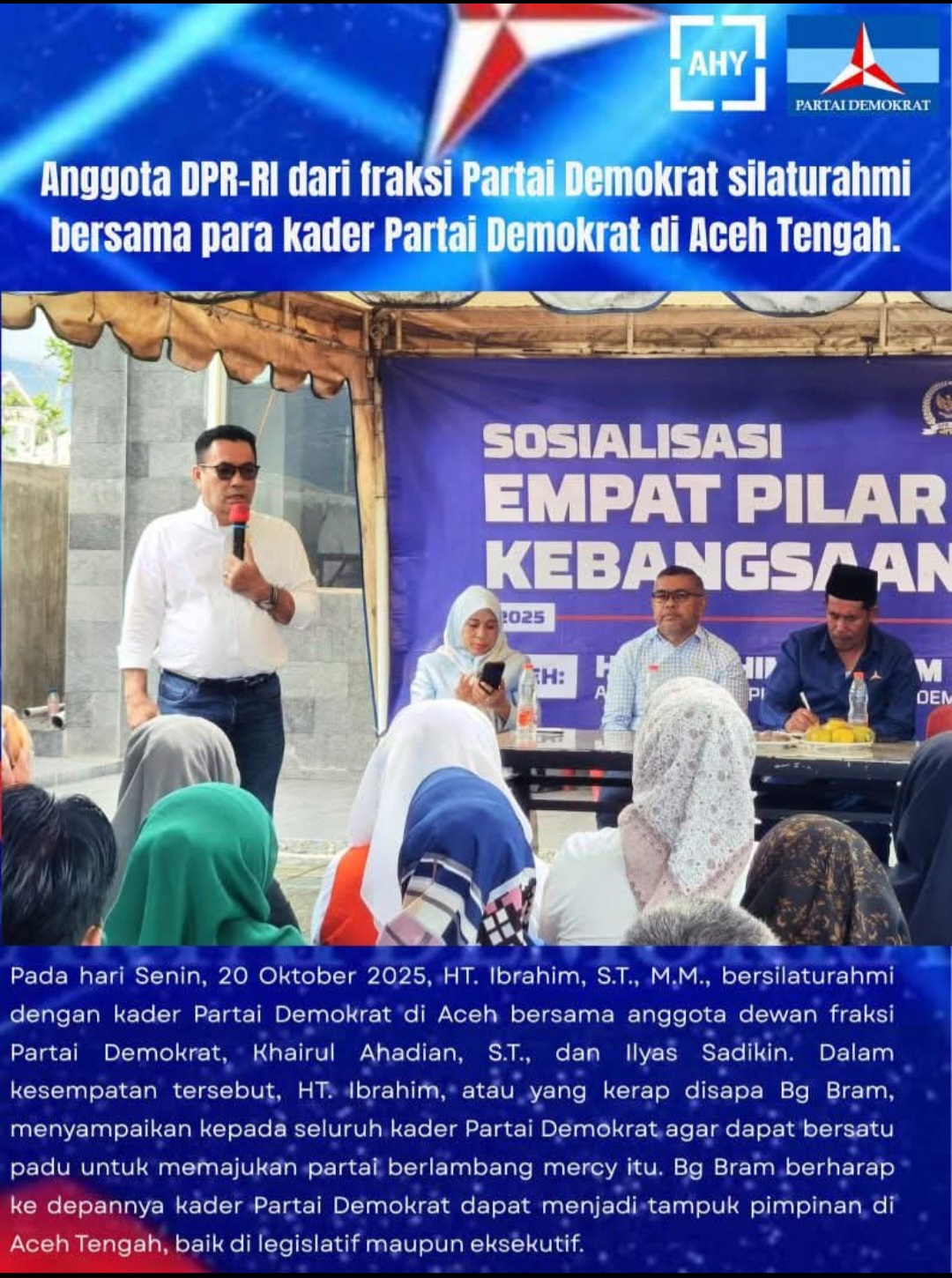 Salah satu tokoh Demokrat Aceh Tengah, HM. Ibrahim, yang akrab disapa Bg Bram, menegaskan pentingnya soliditas antar kader dalam menghadapi tantangan politik ke depan.