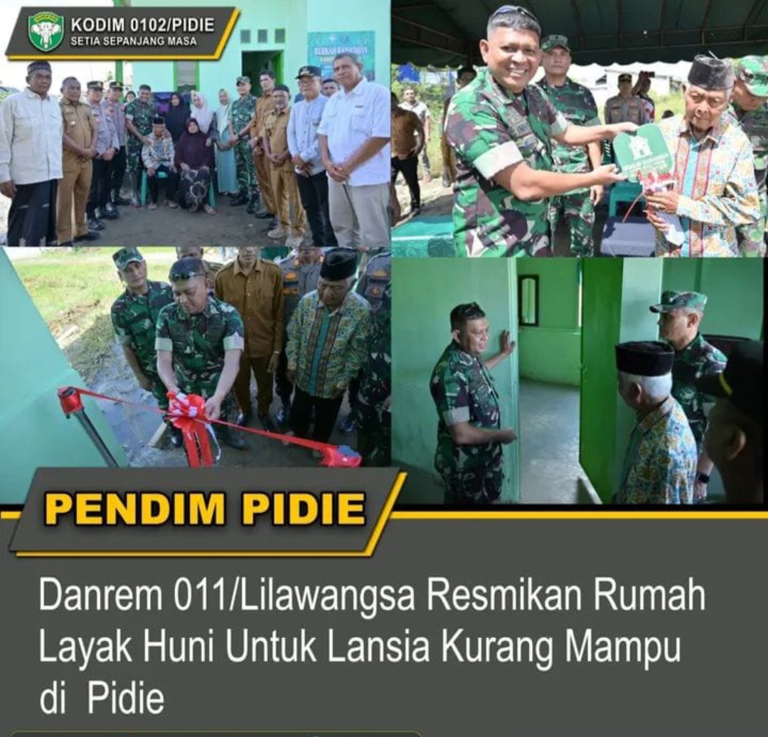 Pembangunan rumah tersebut merupakan swadaya yang dibangun oleh Kodim 0102/Pidie sebagai bentuk kepedulian dan tanggung jawab sosial TNI dalam membantu mengatasi kesulitan rakyat di wilayah binaannya. ini sekaligus menjadi bagian dari optimalisasi pembinaan teritorial satuan di bawah jajaran Korem 011/Lilawangsa.