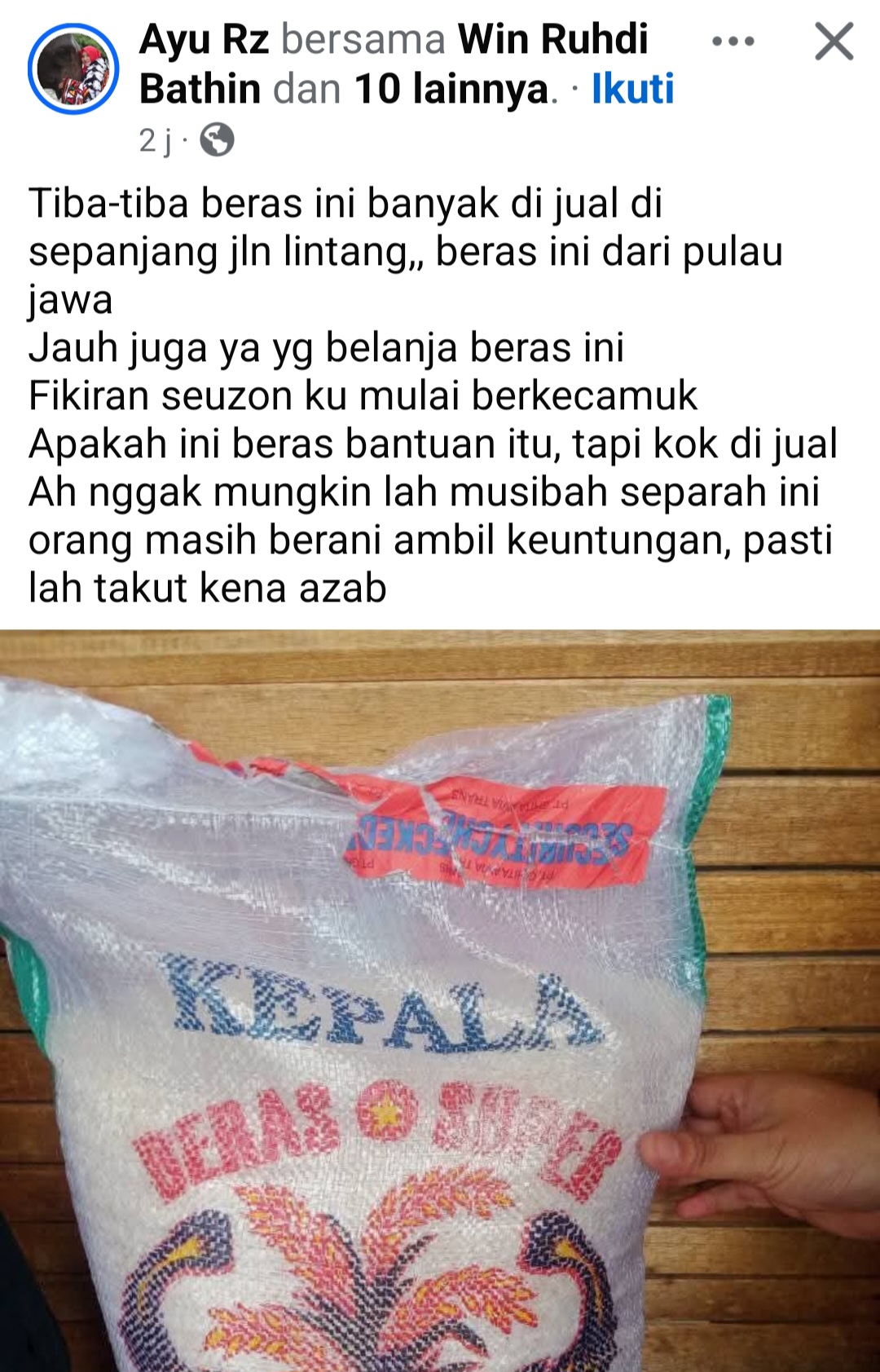 Viralnya dokumentasi ini semakin memperkuat kecurigaan publik terhadap sistem distribusi bantuan. Di tengah kondisi masyarakat yang masih berjuang bangkit dari musibah, muncul dugaan bahwa bantuan kemanusiaan justru berpotensi disalahgunakan oleh oknum tidak bertanggung jawab.