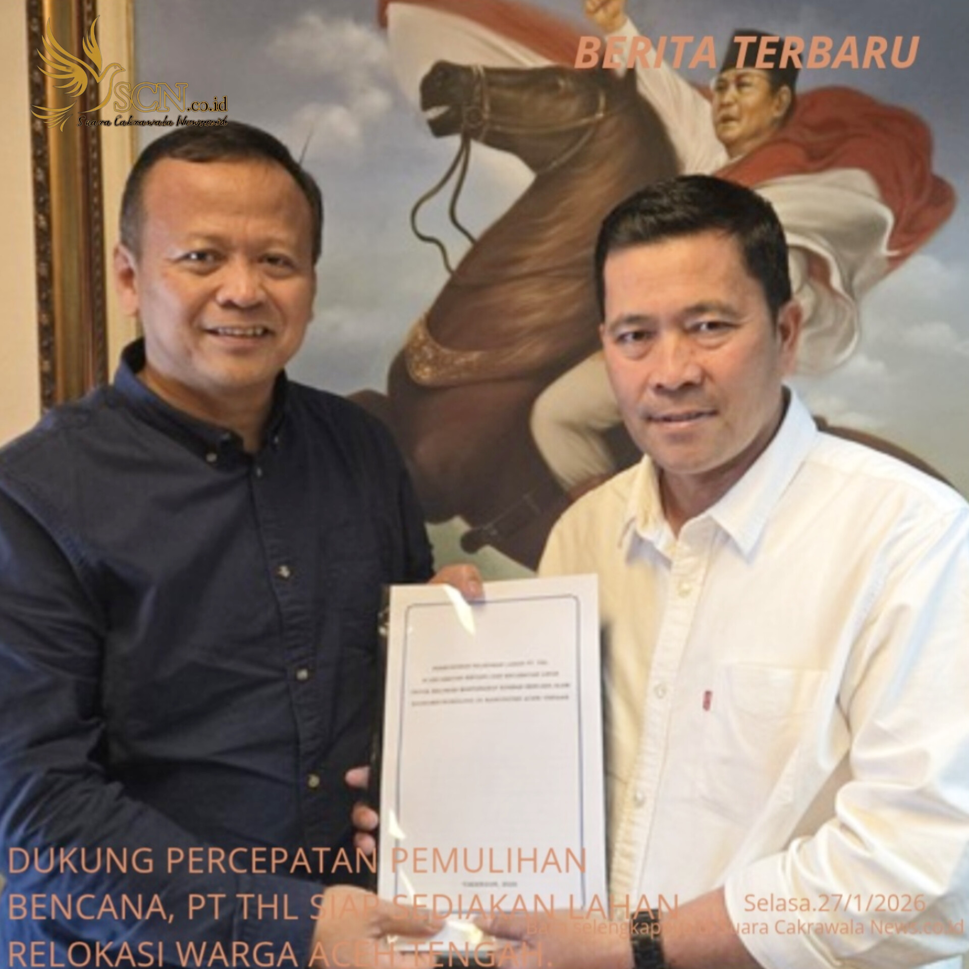 Takengon,SCNews.co.id. — Upaya percepatan pemulihan pascabencana di Aceh Tengah mendapat dukungan penuh dari PT Tusam Hutani Lestari (THL). Hal ini disampaikan Direktur Utama PT THL, Edhy Prabowo, saat menerima Bupati Aceh Tengah, Drs. Haili Yoga, M.Si, di Menara Bidakara, Jakarta Selatan, Senin (26/1/2026).