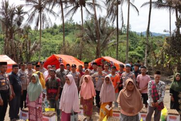 Kapolres yang hadir bersama para Pejabat Utama Polres Aceh Tengah, didampingi Kapolsek Linge serta aparatur kampung setempat, memberikan bantuan sembako dan tali asih kepada lima kepala keluarga korban terdampak langsung.