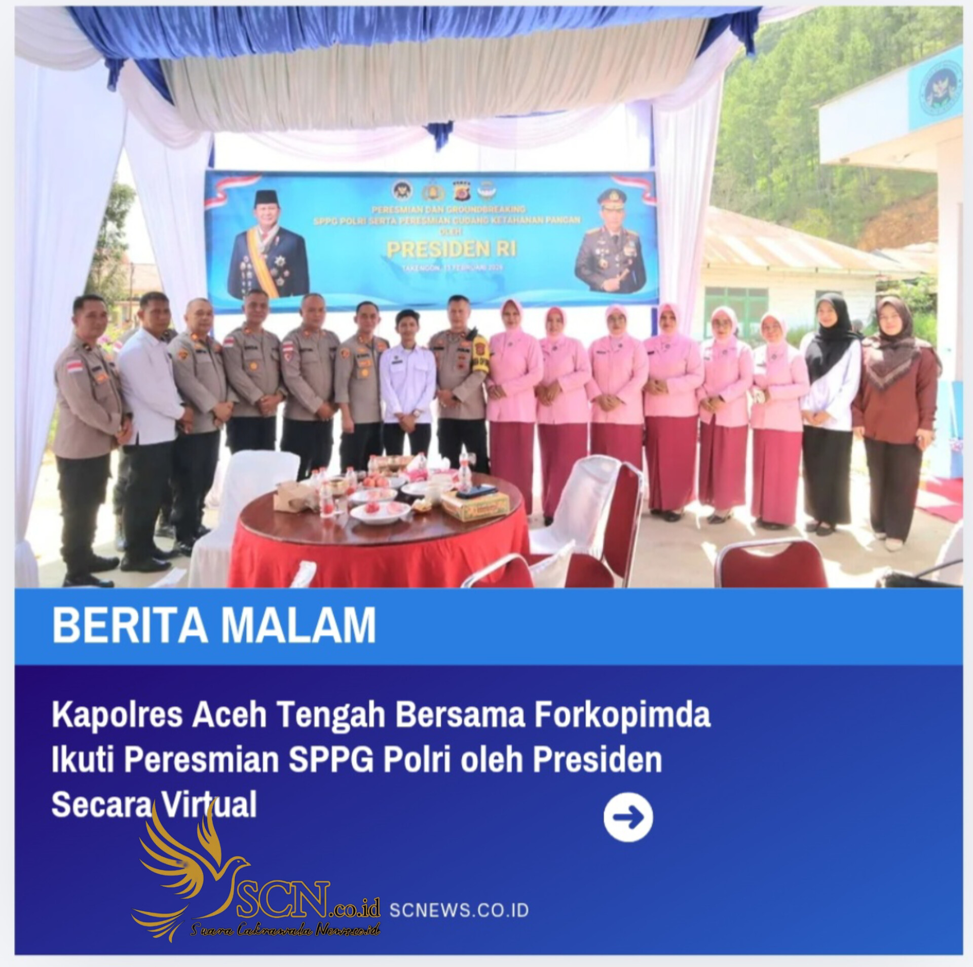 Aceh Tengah,SCNews.co.id — Presiden Republik Indonesia, Prabowo Subianto, meresmikan secara nasional 1.179 Satuan Pelayanan Pemenuhan Gizi (SPPG), 18 Gudang Ketahanan Pangan, serta 107 groundbreaking SPPG milik Polri di seluruh Indonesia. Peresmian dipusatkan di SPPG Palmerah, Jakarta Barat, Jumat (13/2/2026).