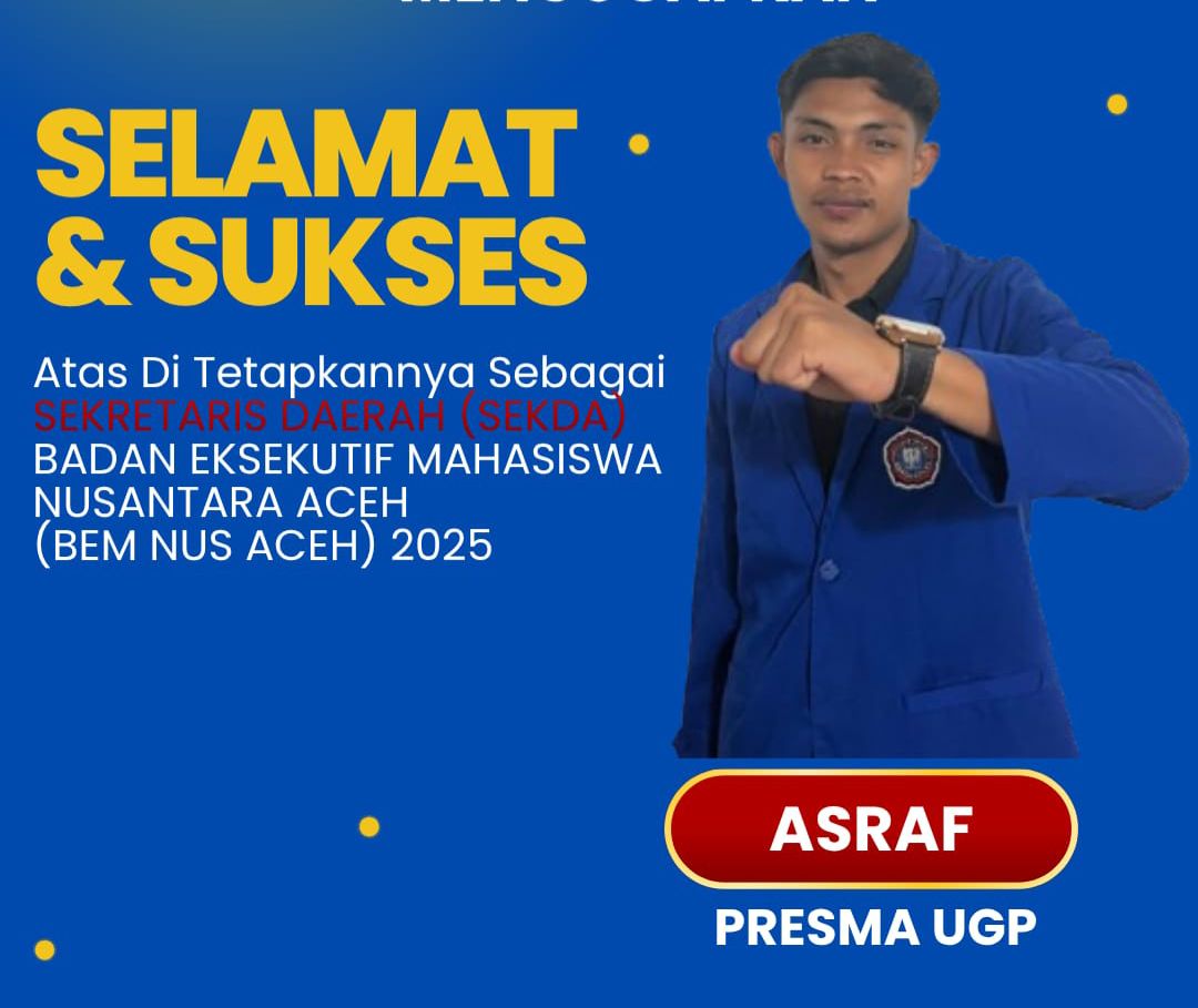KEPEMIMPINAN MAHASISWA ACEH MENGUAT PRESMA UGP ASRAF RESMI DITETAPKAN SEBAGAI SEKRETARIS DAERAH BEM NUSANTARA ACEH