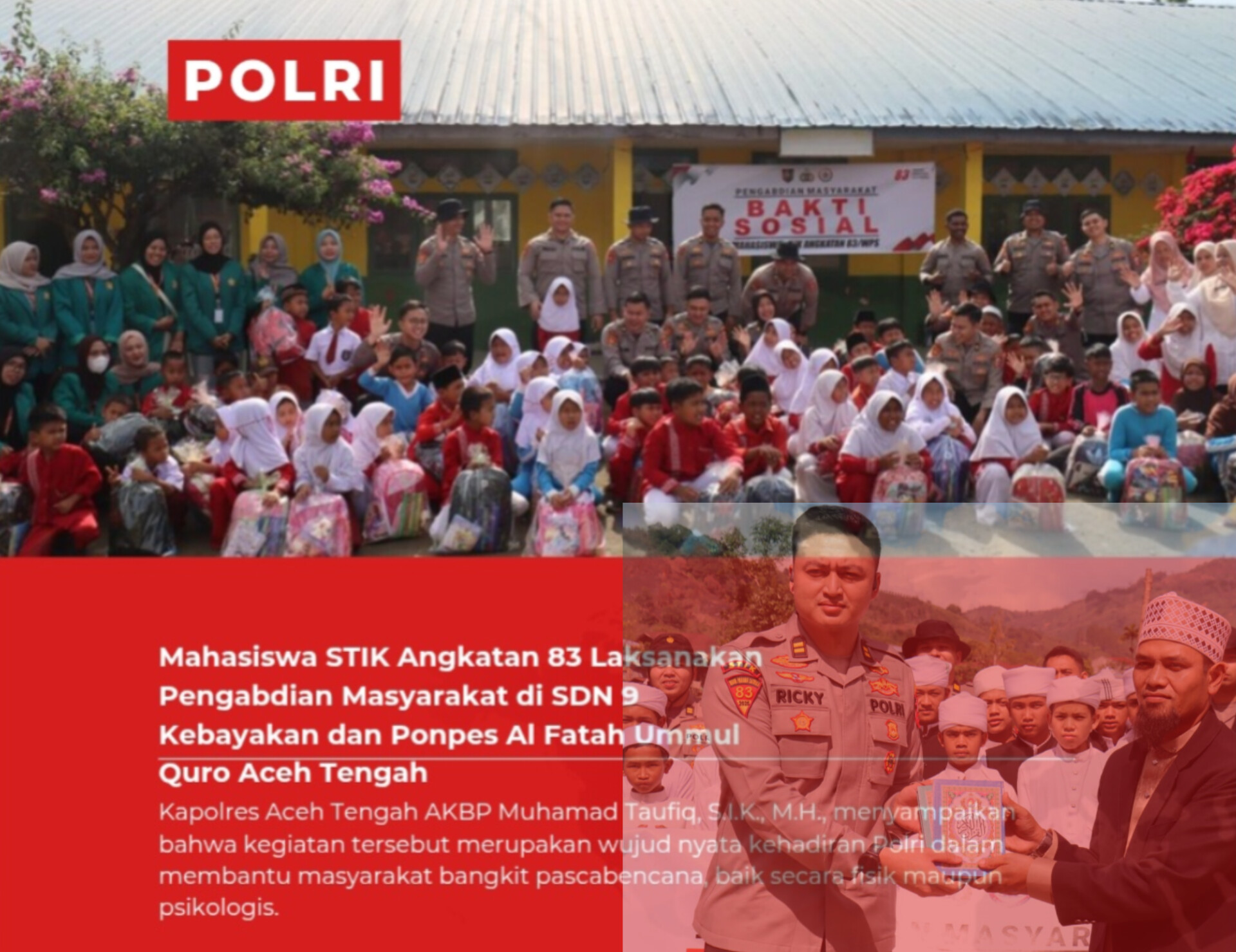 Aceh Tengah,SCNews.co.id — Mahasiswa Sekolah Tinggi Ilmu Kepolisian (STIK) Lemdiklat Polri Angkatan 83/Widya Pratama Seva (WPS) melaksanakan kegiatan pengabdian masyarakat dan bakti sosial di SDN 9 Kecamatan Kebayakan serta Pesantren Al Fatah Ummul Quro, Kampung Pepalang, Kecamatan Pegasing, Kabupaten Aceh Tengah, Rabu (11/2/2026).