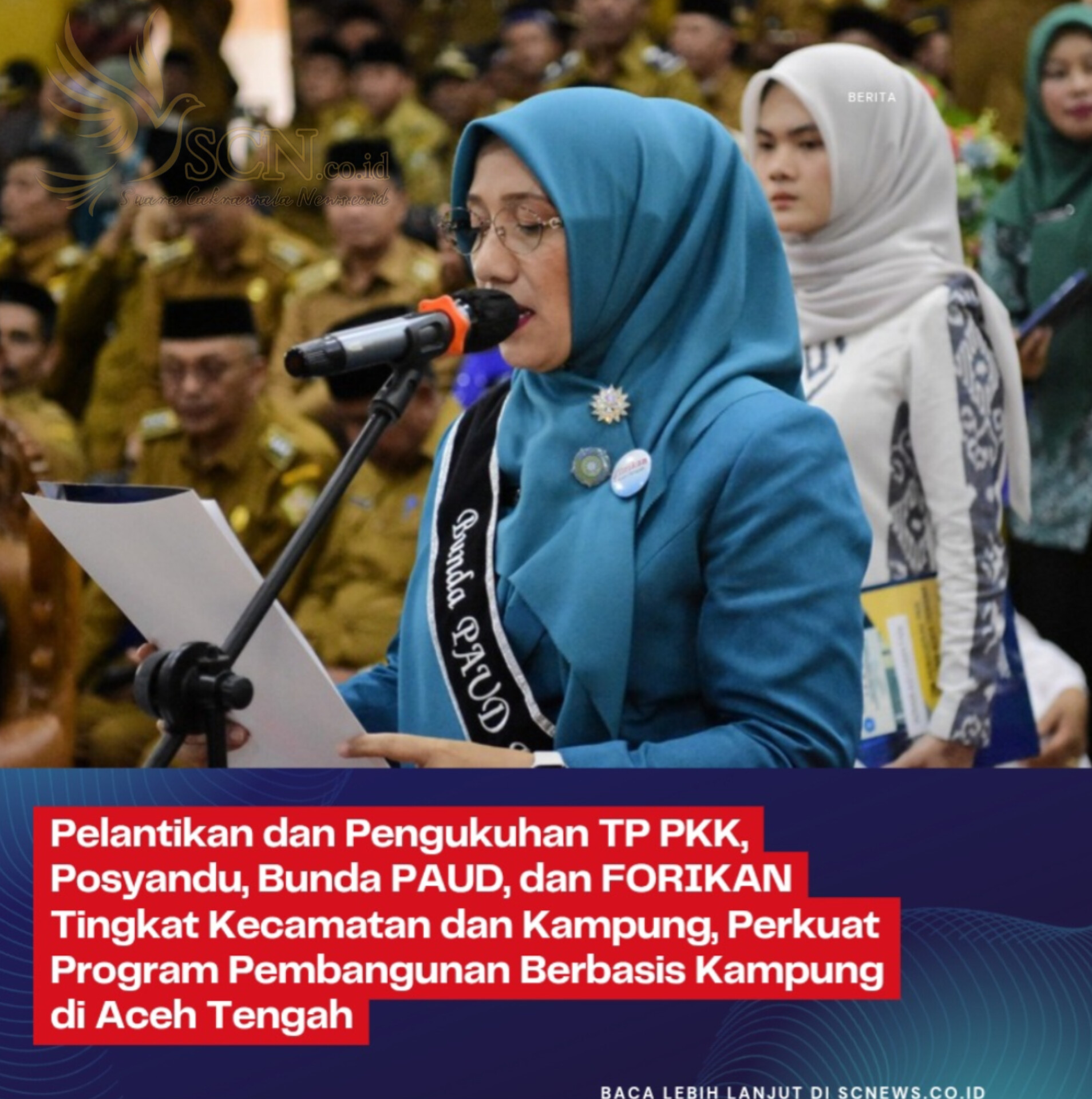 Takengon,SCNEWS.CO.ID – Pemerintah Kabupaten Aceh Tengah melaksanakan pelantikan dan pengukuhan Ketua TP PKK, Pembina Posyandu, Bunda PAUD, serta Ketua FORIKAN tingkat kecamatan dan kampung, yang berlangsung di Gedung Olahraga dan Seni (GOS), Selasa, (14/04/2026).