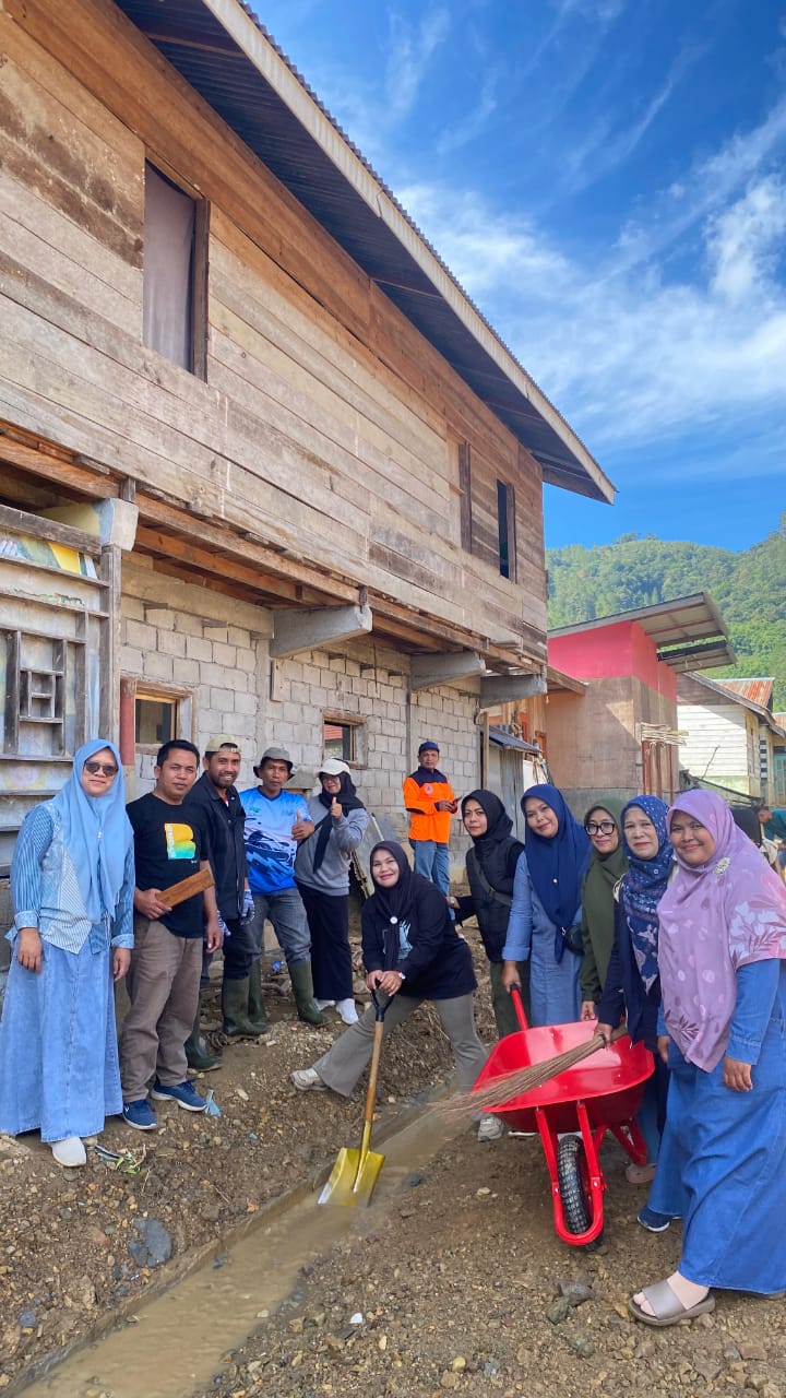 Gotong royong difokuskan pada pembersihan material longsor dan sisa banjir bandang berupa lumpur, tanah, kayu, bebatuan, serta sampah alam yang menumpuk di badan jalan desa, saluran air, dan area permukiman warga. Kondisi tersebut sebelumnya menghambat aktivitas masyarakat serta berpotensi menimbulkan dampak lanjutan apabila tidak segera ditangani. Dengan semangat kebersamaan, seluruh peserta bahu-membahu membersihkan lingkungan agar kembali layak dan aman digunakan.