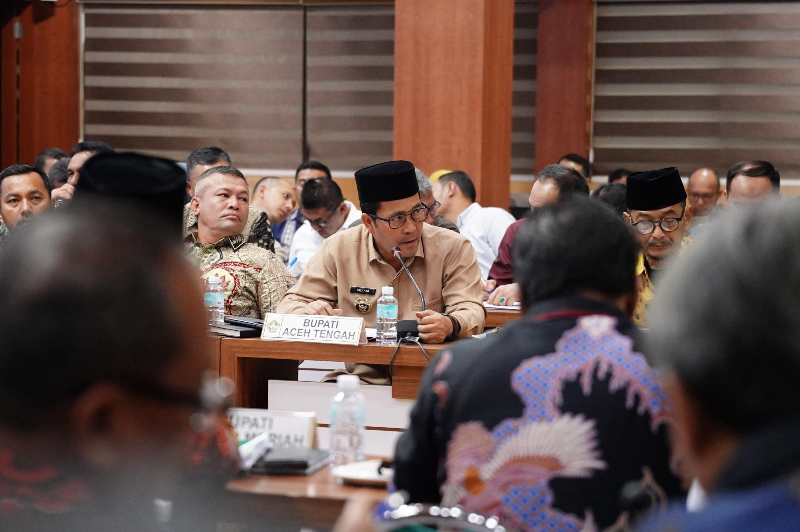 Dalam kegiatan Monitoring dan Evaluasi Penggunaan Tambahan TKD Pasca Bencana yang berlangsung di Gedung Serbaguna Kantor Gubernur Aceh, Kamis (26/03/2026), Bupati Aceh Tengah Drs. Haili Yoga, M.Si menyampaikan sejumlah persoalan prioritas di Aceh Tengah yang perlu mendapat perhatian, khususnya terkait dampak bencana terhadap infrastruktur dan perekonomian daerah.