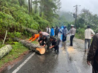 Personel Polres Aceh Tengah dengan sigap melakukan pembersihan batang pohon menggunakan parang dan melakukan pengaturan arus lalu lintas. Pohon tumbang juga diketahui menimpa kabel PLN, sehingga petugas menghubungi BPBD Aceh Tengah dan pihak terkait.