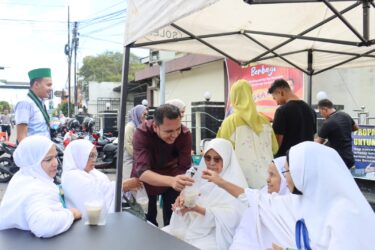 Dalam kegiatan tersebut, para peserta secara gotong royong memasak bubur susu kacang hijau, kemudian membagikannya kepada masyarakat yang melintas dan membutuhkan.