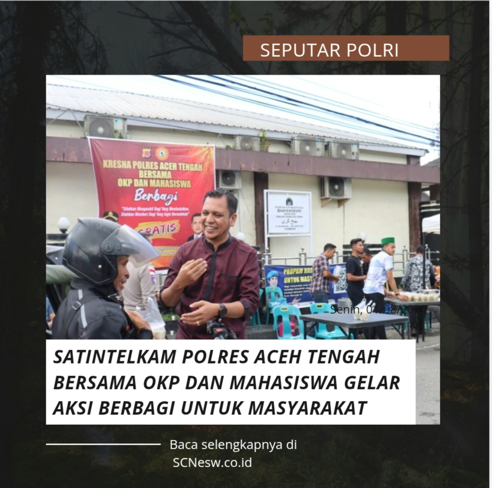 Aceh Tengah,SCNews.co.id — Satuan Intelkam Polres Aceh Tengah bersama organisasi kepemudaan (OKP) dan mahasiswa menggelar aksi sosial dengan membagikan makanan bergizi kepada masyarakat, Jumat (10/4/2026) pagi.