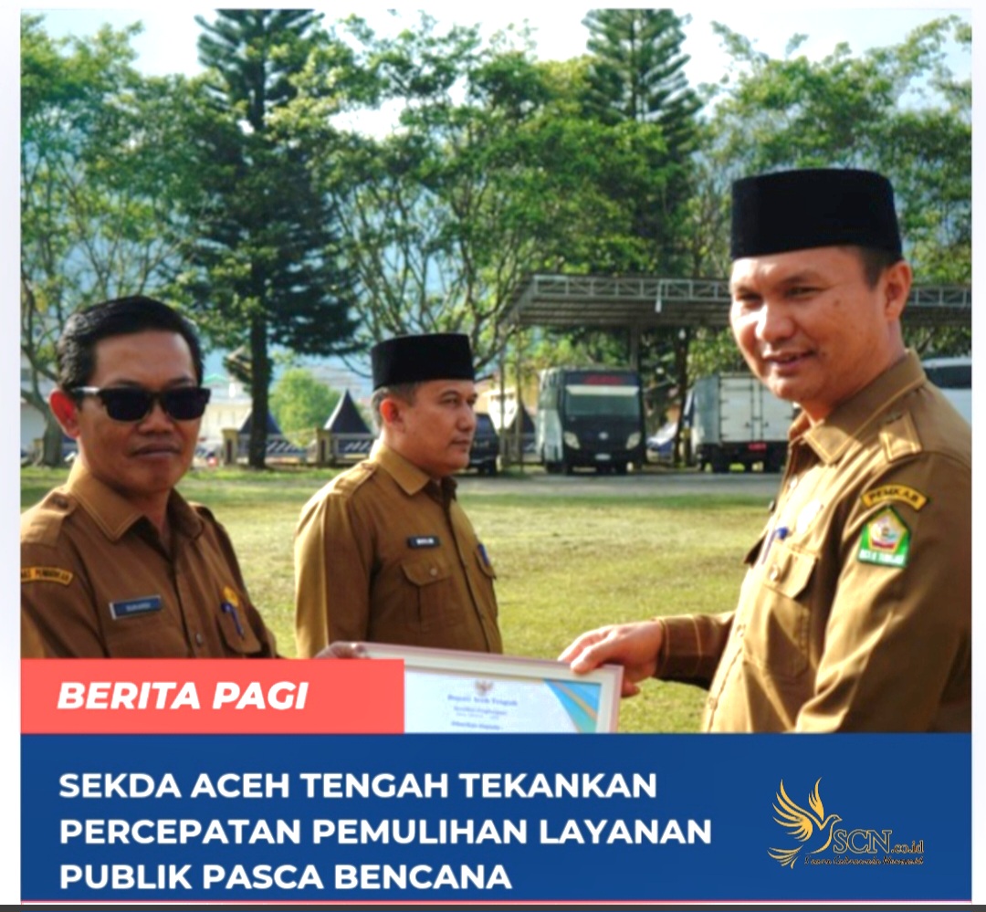 Takengon,SCNews.co.id. – Sekretaris Daerah Kabupaten Aceh Tengah, Drs. Mursyid, M.Si, menegaskan pentingnya percepatan pemulihan layanan dasar masyarakat pascabencana hidrometeorologi yang melanda wilayah Aceh Tengah. Hal tersebut disampaikannya saat memimpin apel bersama aparatur sipil negara (ASN) di Lapangan Setdakab Aceh Tengah, Senin Pagi (12/01/2026).
