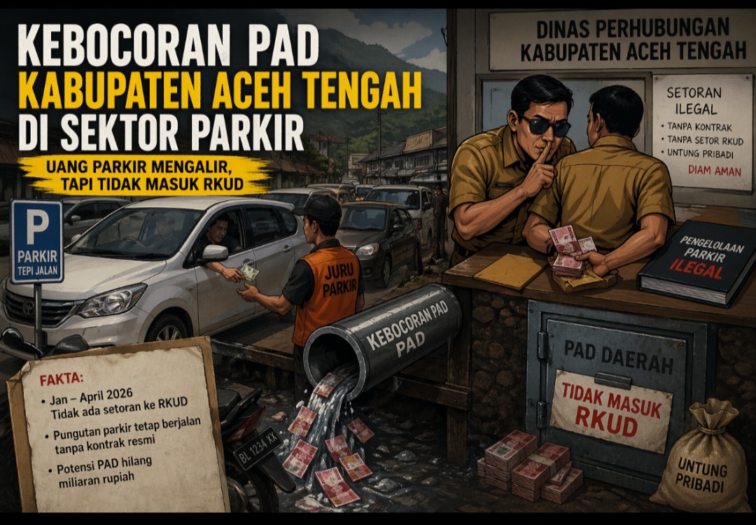 Aceh Tengah,SCNews.co.id – 24 April 2026.Aroma ketidakberesan dalam pengelolaan parkir tepi jalan di Kabupaten Aceh Tengah perlahan mulai terungkap. Keterlambatan proses lelang yang seharusnya dilakukan sejak awal tahun 2026 membuka celah besar,potensi kebocoran Pendapatan Asli Daerah (PAD) selama empat bulan pertama tahun anggaran.