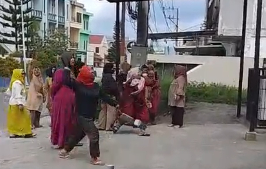 Sejumlah ibu rumah tangga mendatangi kantor tersebut dan meluapkan kekecewaan dengan melempari halaman kantor menggunakan batu serta benda yang ada di sekitar lokasi.