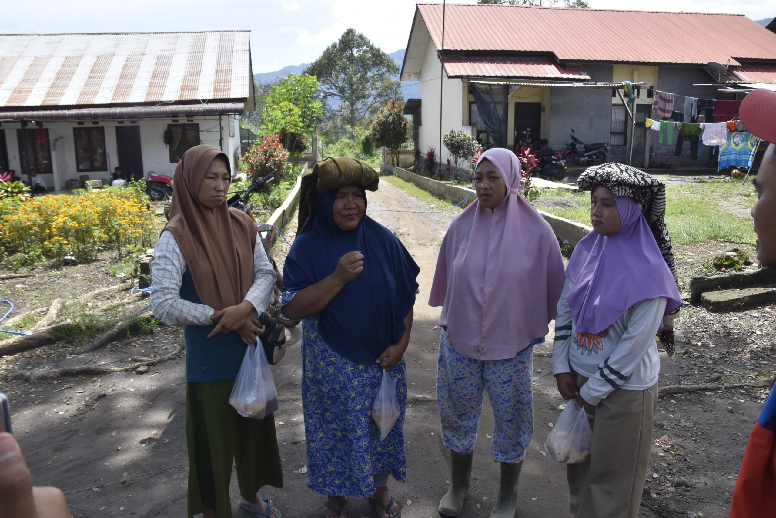 Di tengah keterbatasan itu, Ibu Sri Murni dan keluarga lainnya memilih bekerja sebagai buruh upah harian. “Ngutip cabe di bukit, upahnya sekitar Rp. 50 ribu sehari. Itu untuk makan anak-anak. Alhamdulillah, bisa bertahan”, tuturnya.