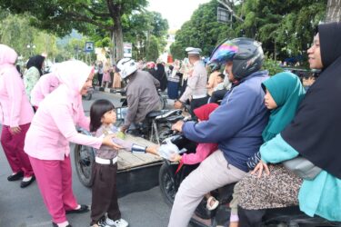 Dengan didampingi dewan guru dan pengurus yayasan, anak-anak TK YKB tampak antusias membagikan paket makanan dan minuman berbuka kepada para pengguna jalan, mulai dari pengendara sepeda motor (R2), pengemudi becak motor, hingga pejalan kaki.